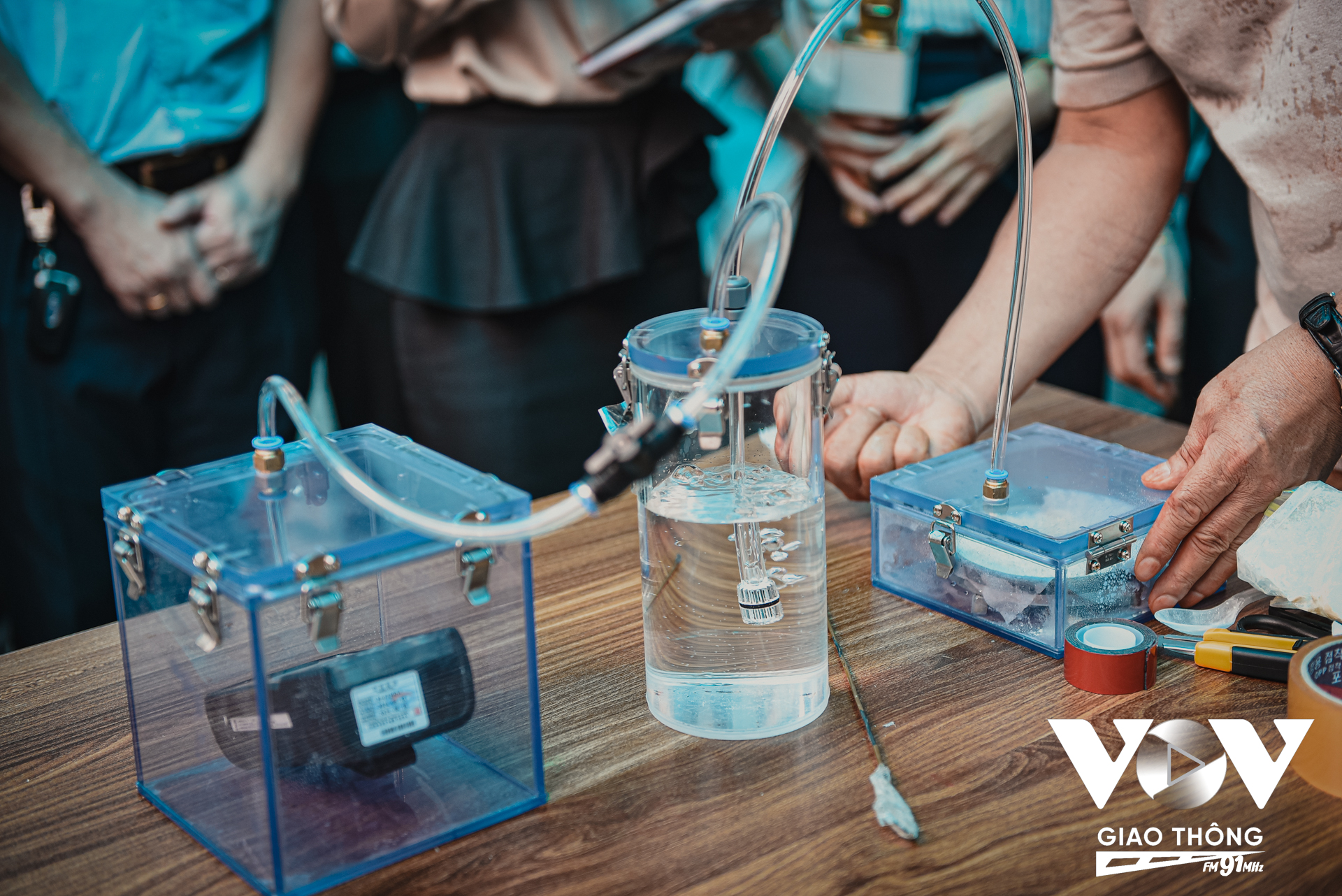 Nhiều người dân cũng đón xem buổi thực nghiệm khẩu trang cứu sinh tạo oxy đầu tiên tại Việt Nam